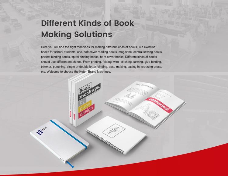 Fornecemos diferentes tipos de livros, finalizando equipamentos de encadernação, incluindo os livros de exercícios costurados para os alunos que usam, tanto em máquinas de encadernação semiautomáticas quanto totalmente automáticas. Para as soluções automáticas, você deve usar a máquina de impressão offset para imprimir a capa do livro e depois usar nosso